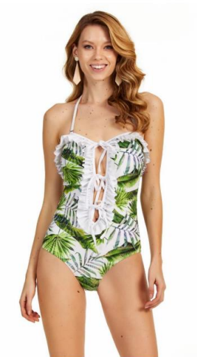 Yeşil Yaprak Desenli Mayo
